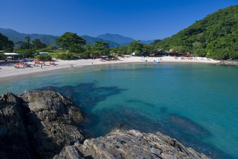 Por la mañana, iremos caminando hasta el muelle para embarcar en este paseo compartido tradicional por las bahías de Paraty. Visitaremos dos playas y dos islas paradisíacas, donde tendrá la oportunidad de disfrutar de aguas cristalinas y observar una gran variedad de pececitos nadando a su alrededor. La embarcación se detendrá en cada lugar durante 40 minutos para que pueda bañarse y hacer snorkeling. Para quienes deseen, habrá a su disposición flotadores para tirarse al mar y máscaras de buceo para alquilar. Si prefiere admirar el paisaje sin meterse al mar, incluye un bote de apoyo que ofrece transportar a los pasajeros hasta la playa.